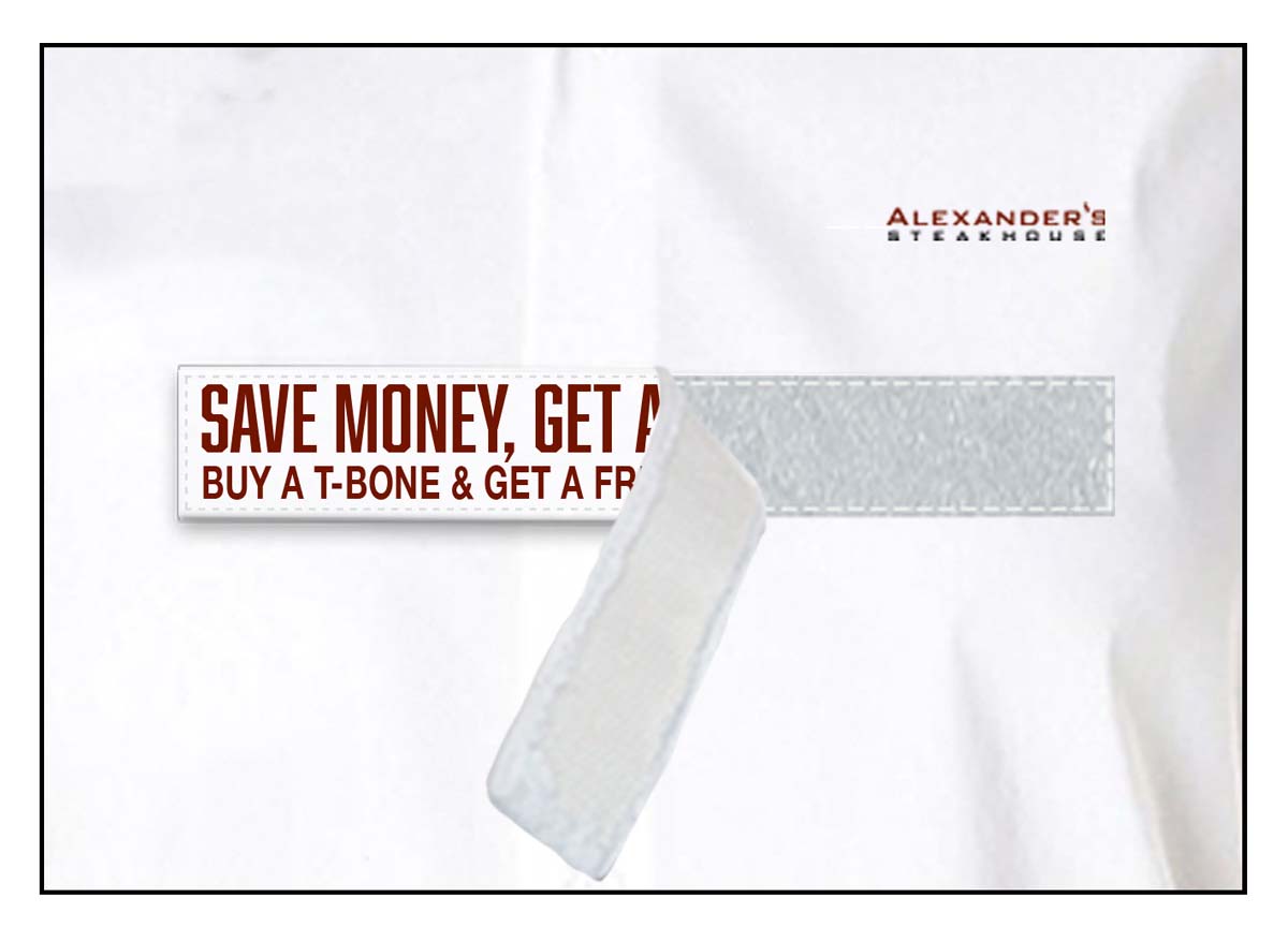 The AdStrip outer is made of self fabric and inside is hook (Velcro™), which attaches to loop (Velcro™) material sewn into the shirt. The AdStrip can be printed via heat transfer, dye sublimation or direct embroidery.