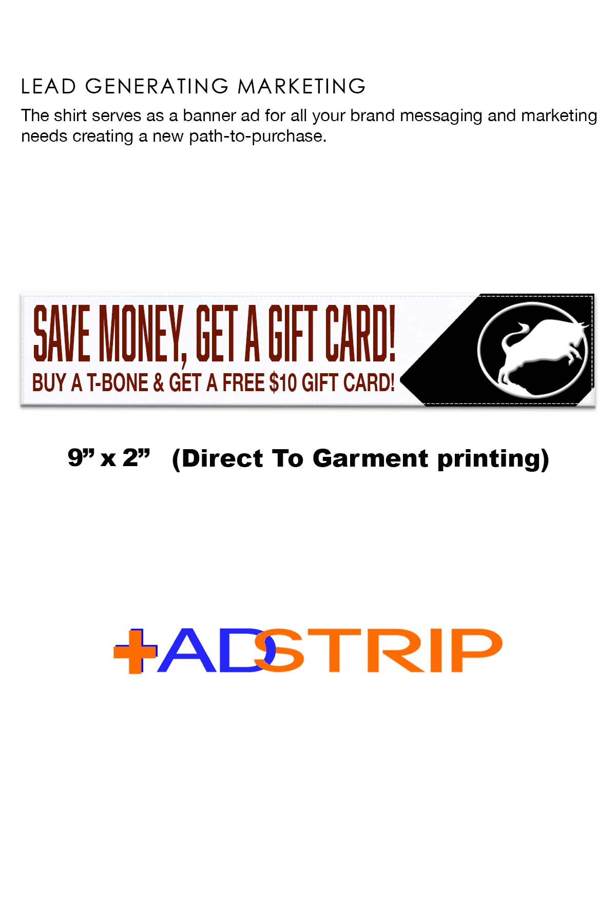 Expanding the reach of a message while putting money in your pockets with something you already buy, shirts! If billboards, targeted ads and pops had a child, they’d want to raise that child to be an AdStrip Shirt.